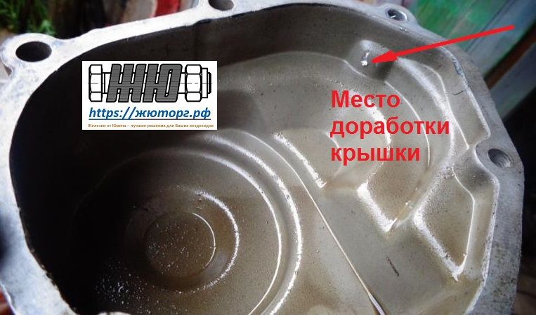 При установке шестерен следует обратить внимание на возможное задевание увеличенной ведущей шестерней прилива крышки. Следует доработать крышку в этом месте при помощи зубила или бор-машинки.