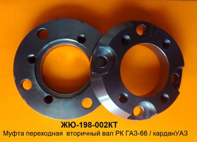 Зачастую, используя раздаточную коробку ГАЗ-66, применяют карданные передачи размерности УАЗ (ГАЗель, Волга, Соболь). В этом случае довольно остро встает проблема перехода от фланцев раздаточной коробки к вилкам карданных передач меньшей размерности. Нужна не просто токарка, а достаточно качественно изготовленная деталь для того, чтобы исключить опасность дисбаланса или ослабления ответственного соединения.