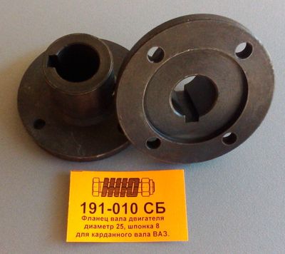 Фланец служит для соединения двигателя с прямым валом Ф25 и шпонкой 8 мм с карданным валом размерности ВАЗ-2101 (2121).