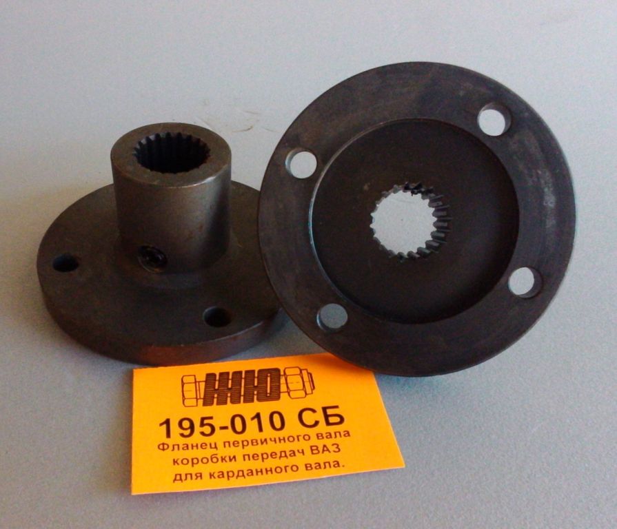 Фланец устанавливается на первичный вал КПП силового агрегата ВАЗ всех моделей, кроме Оки. Служит для подвода крутящего момента посредством карданного вала размерности ВАЗ. Для осевой фиксации служит стопорный винт М8.