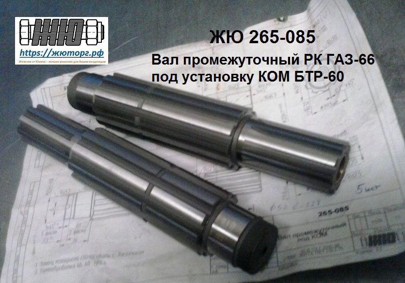 В комплект поставки входит оригинальный вал из высокопрочной стали с запрессованной антифрикционной втулкой под установку ВОМ БТР-60 на раздаточную коробку ГАЗ-66.